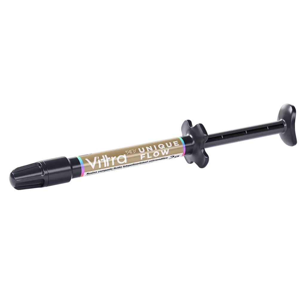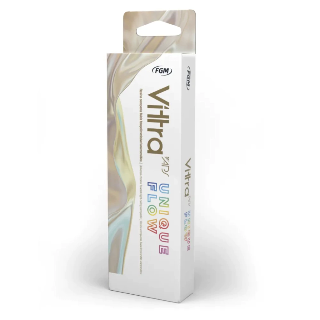 Vittra APS Unique Flow es un composite fluido fotopolimerizable de baja viscosidad, fabricado en Brasil, que combina innovación y seguridad para ofrecer restosuraciones estéticas, eficientes y mínimamente invasivas. Libre de Bisfenol A (BPA), esta resina unicromática refleja exactamente el color del diente, logrando un efecto camaleón en todas las tonalidades, desde Bleach hasta D4, sin necesidad de estratificación ni múltiples colores, simplificando y agilizando los procedimientos clínicos.