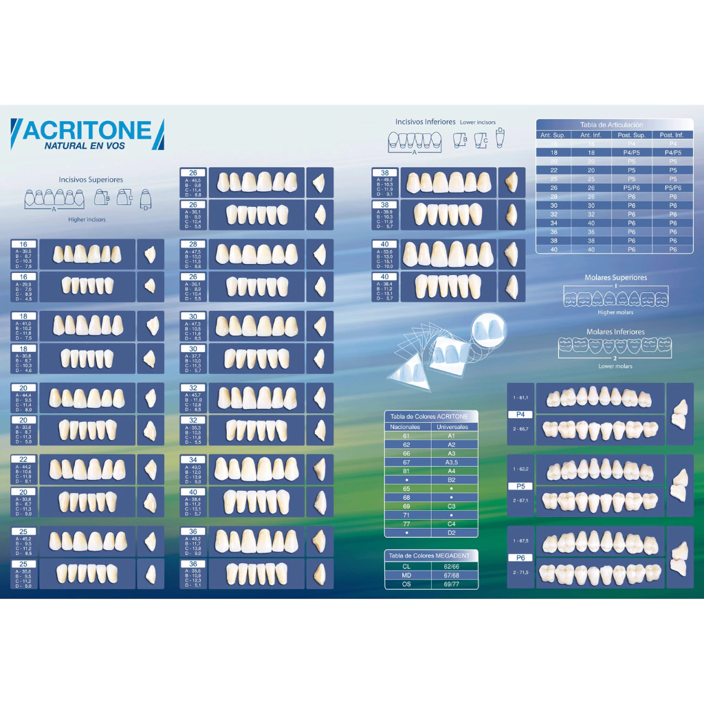 Diente de Acrilico Acritone bicapa de industria nacional