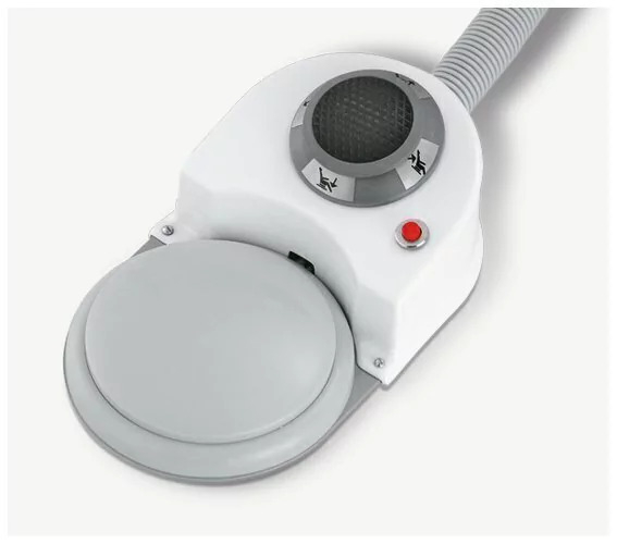 La altura de la mesa se regula mediante una simple y rápida operación sin moverse el profesional de su posición de trabajo.